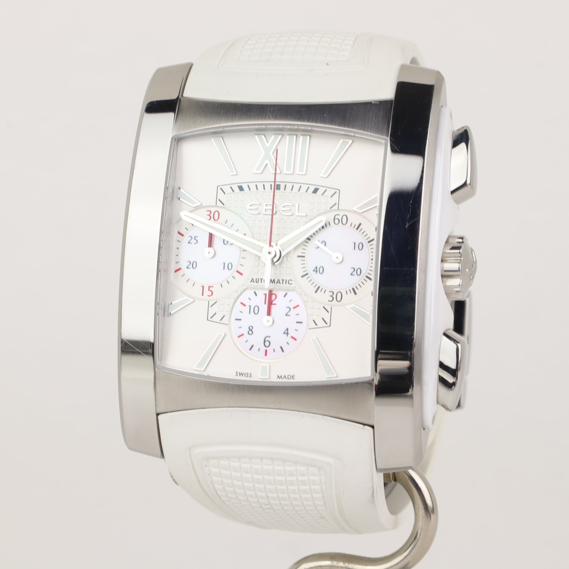 This Ebel Brasilia Chronograph Automatic White with reference number 9126M52 features a case made of steel with a diameter of 38mm excluding the crown. The bracelet is made of rubber and has a steel clasp. The production year of the watch is 2010. As can be seen in the photos the watch remains in very good condition. The movement in this watch is automatic. The scope of delivery includes the original box and original papers. Very nice, complete set, year of sale 2010 (NL).
