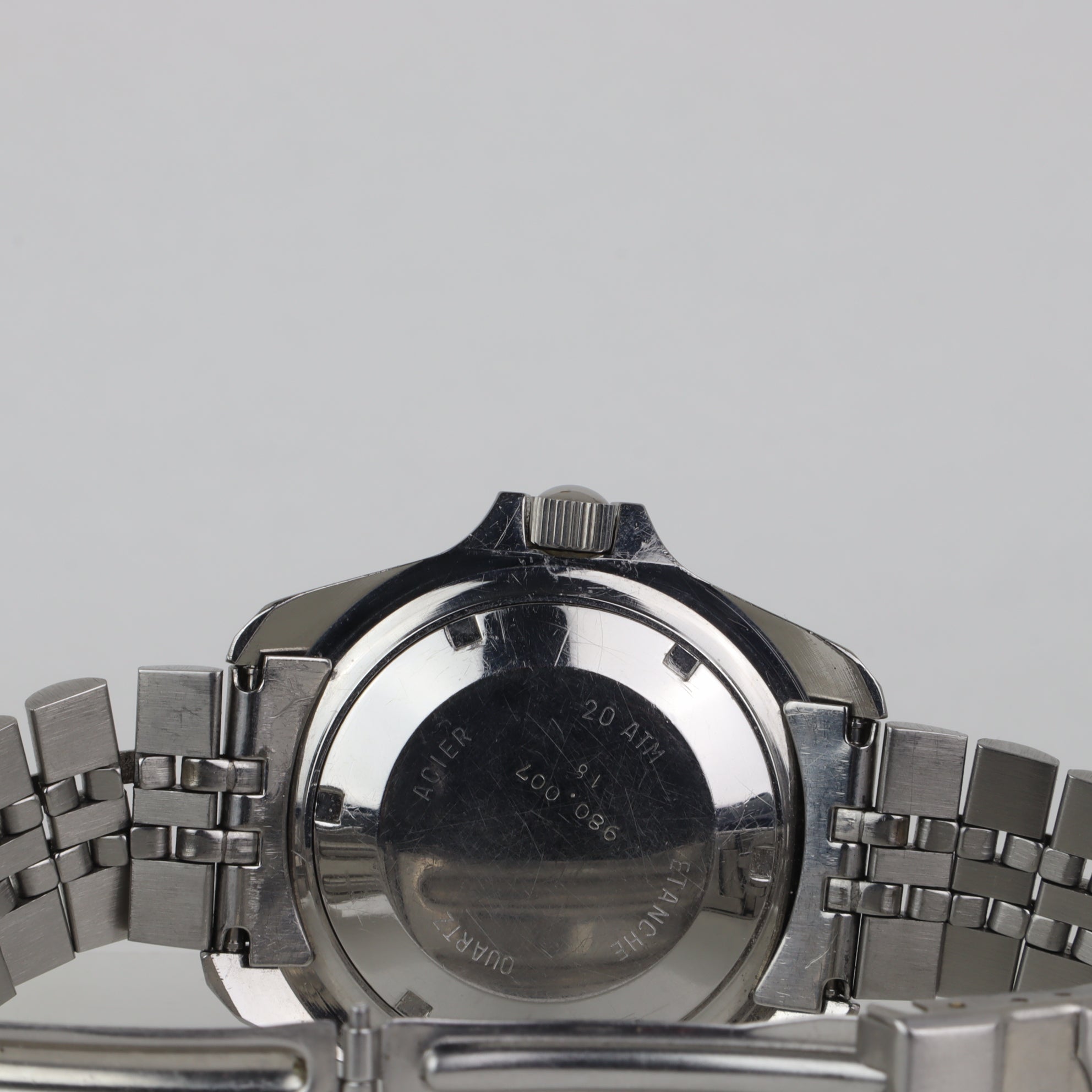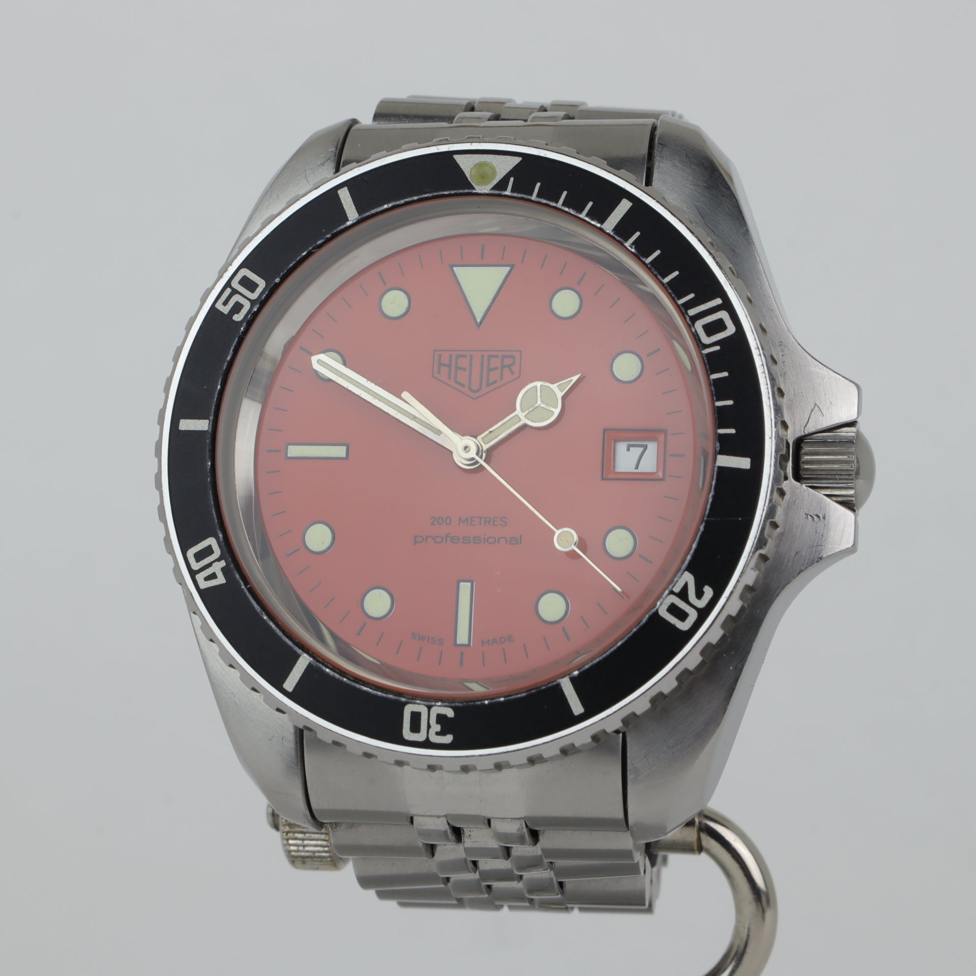 This Heuer with reference number 980.007 features a case made of steel with a diameter of 42mm excluding the crown. The bracelet is made of steel and has a steel clasp. The production year of the watch is 1984. As can be seen in the photos the watch remains in very good condition. The movement in this watch is quartz. The scope of delivery includes the watch only. Older service dial and hands with tritium (original replacements).