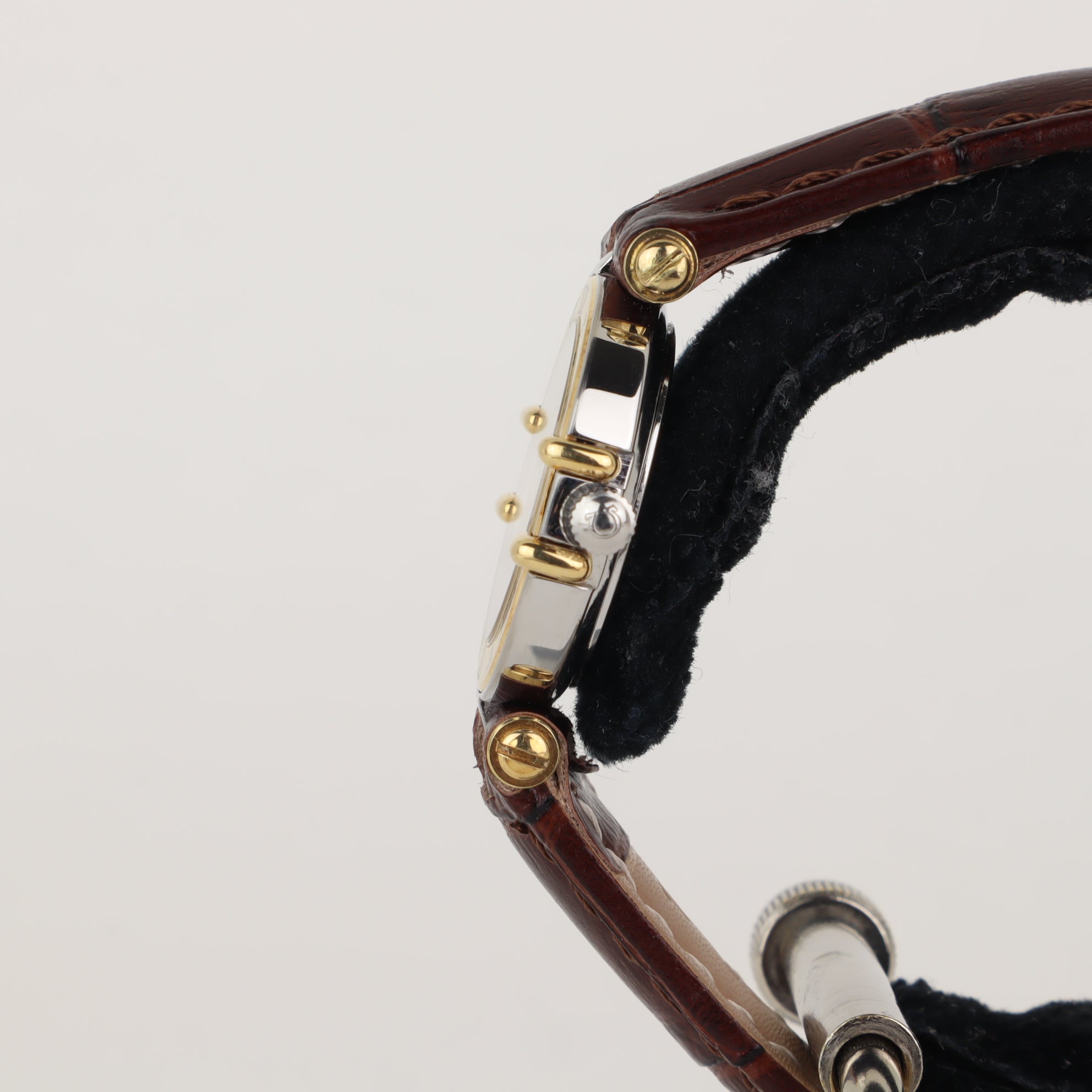 This Omega Constellation with reference number 595.1080 features a case made of gold/steel with a diameter of 22.6mm excluding the crown. The bracelet is made of leather and has a steel clasp. The production year of the watch is 1989. As can be seen in the photos the watch remains in very good condition. The movement in this watch is quartz. The scope of delivery includes the watch only. Excellent condition, unpolished. Aftermarket strap and buckle. Year approximated from serial number starting with 51.