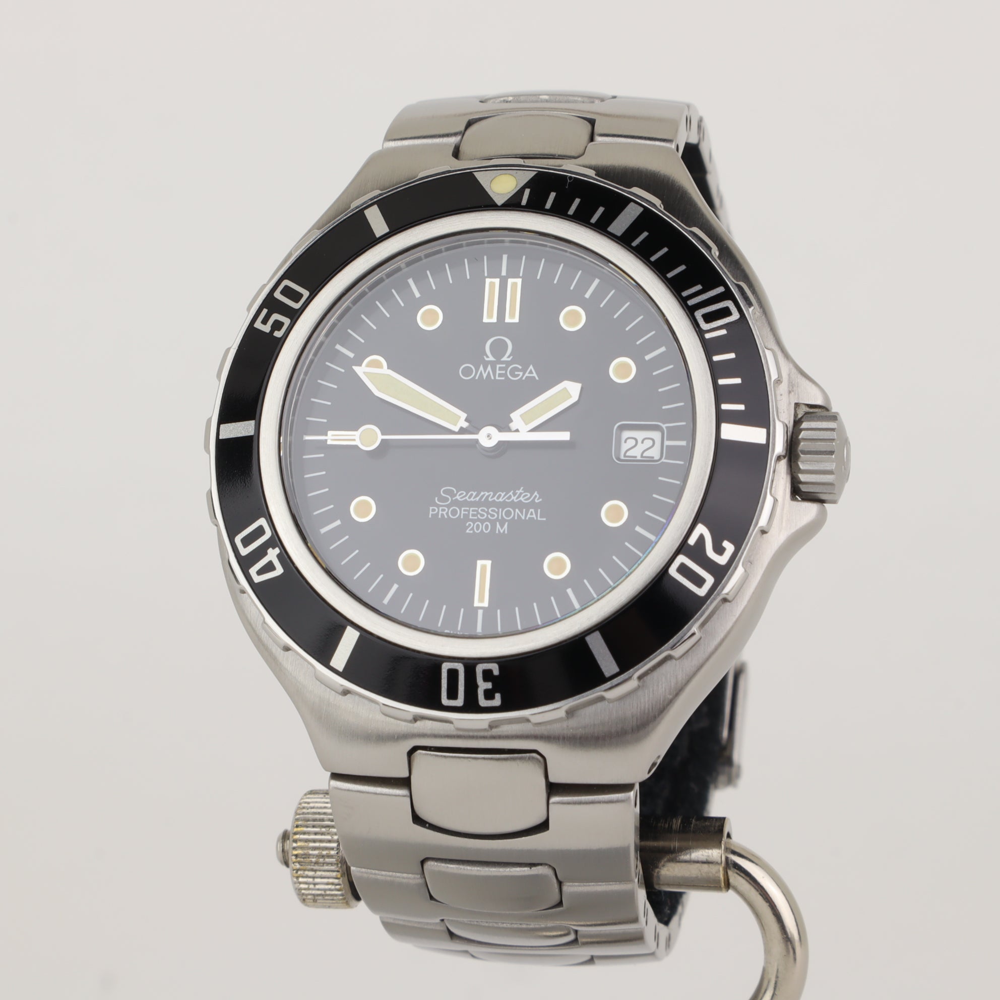 This Omega Pre Bond with reference number 2850.50 features a case made of steel with a diameter of 36.5mm excluding the crown. The bracelet is made of steel and has a steel clasp. The production year of the watch is 1993. As can be seen in the photos the watch remains in very good condition. The movement in this watch is quartz. The scope of delivery includes the watch only. Impeccable condition. Hard to find like this. Comes without box & papers, but with the original hang tag. Year is approximated from serial number.
