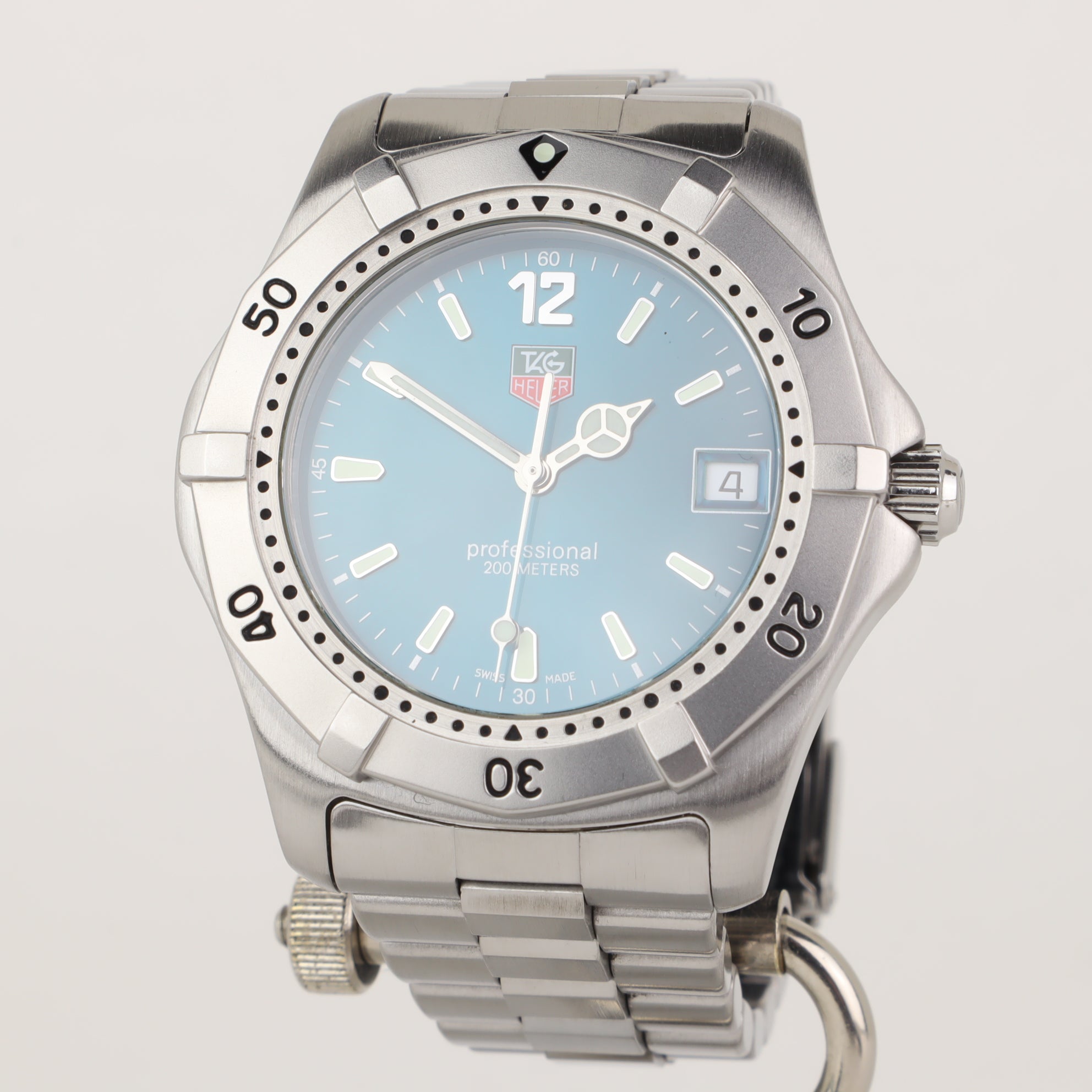 This TAG Heuer 2000 with reference number WK1119-1 features a case made of steel with a diameter of 38mm excluding the crown. The bracelet is made of steel and has a steel clasp. The production year of the watch is unknown. As can be seen in the photos the watch remains in very good condition. The movement in this watch is quartz. The scope of delivery includes the original box only. Super clean condition. Becoming harder to find like this. Comes with original tags, box, just not the warranty card. Pressure tested with receipt.