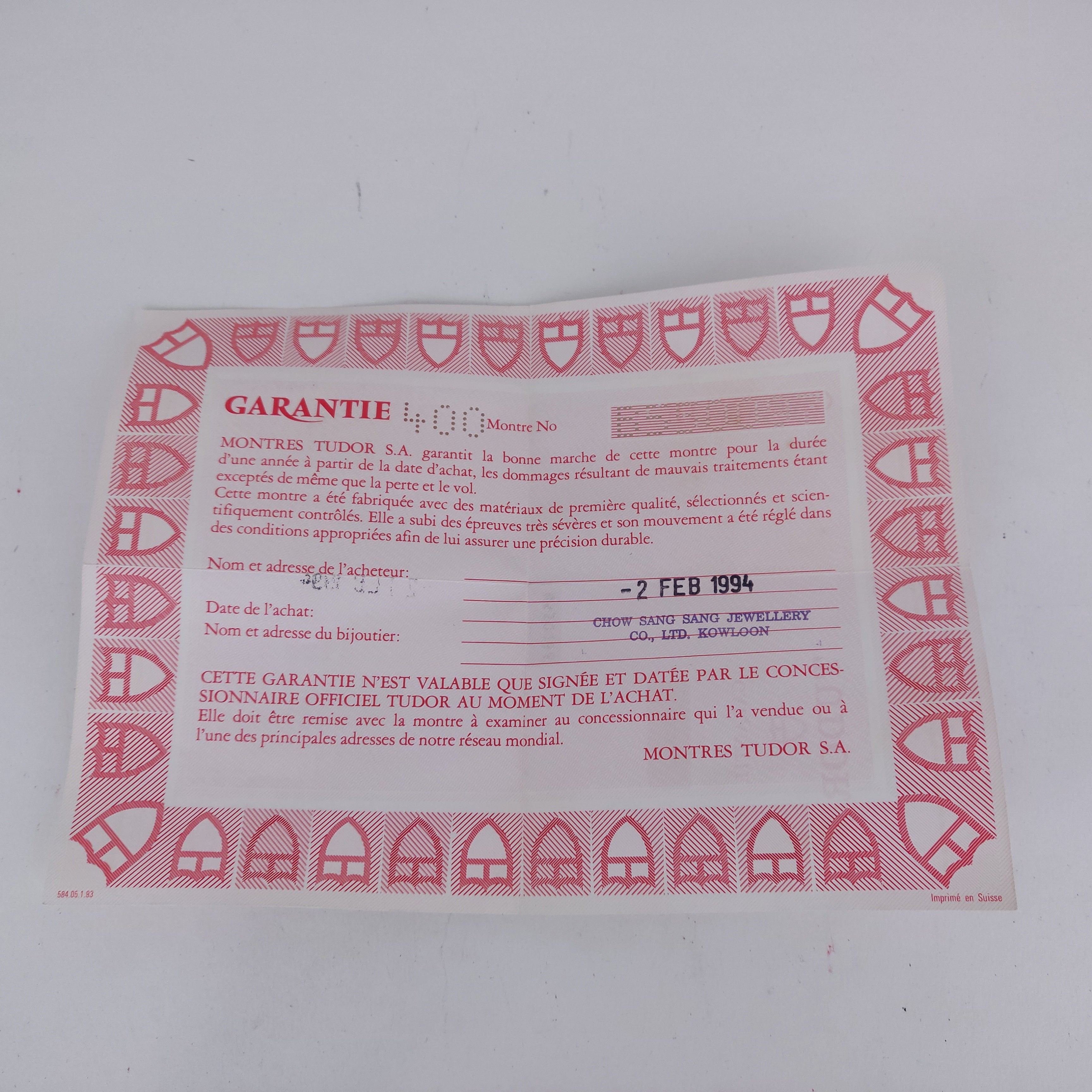Tudor Princess Oysterdate 92313 | Papers | 1994